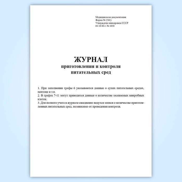 Журнал приготовления и контроля питательных сред (форма 256/у) в Верее купить