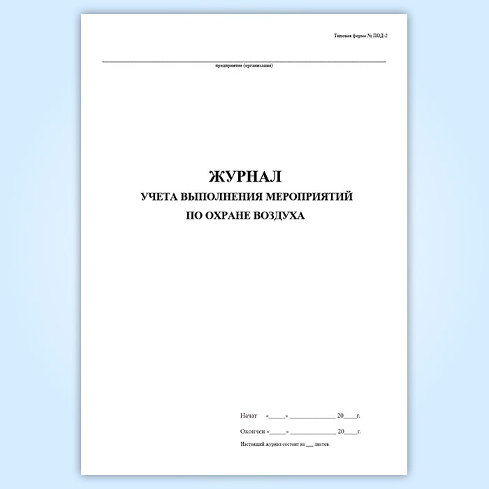 Журнал учета выполнения мероприятий по охране воздуха (форма ПОД-2) в Верее купить