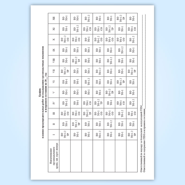 График планово-предупредительных работ по поддержанию грузоподъемных механизмов в исправном состоянии в Верее купить