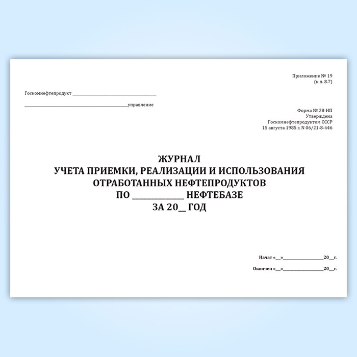Журнал учета приемки, реализации и использования отработанных нефтепродуктов (форма № 28-НП) в Верее купить