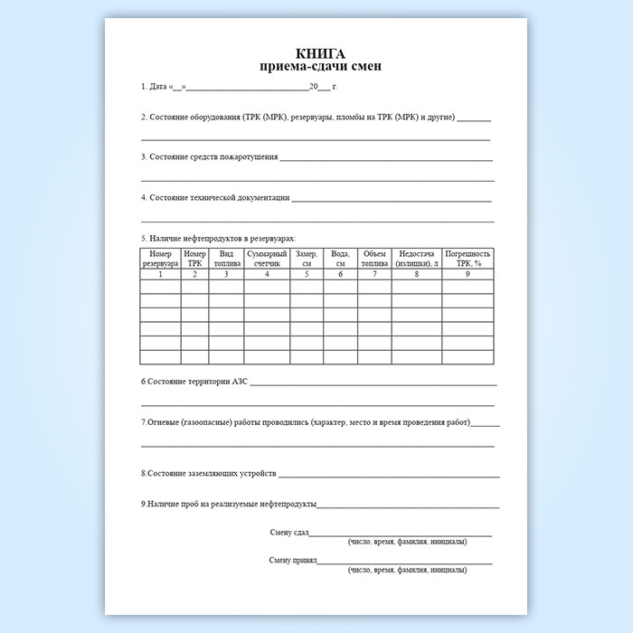 Книга приема-сдачи смен АЗС в Верее купить
