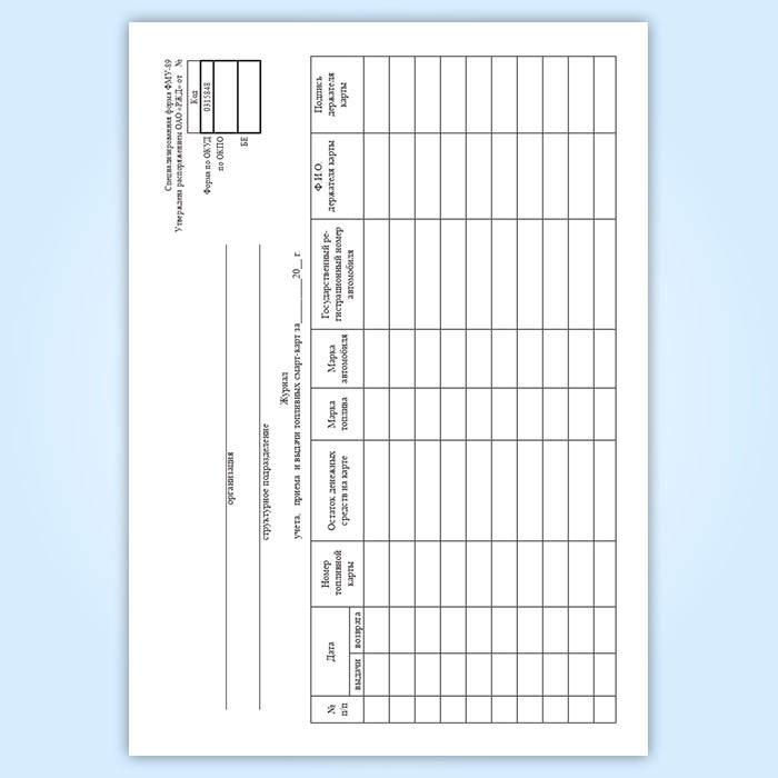 Журнал учета, приема и выдачи топливных смарт-карт в Верее купить