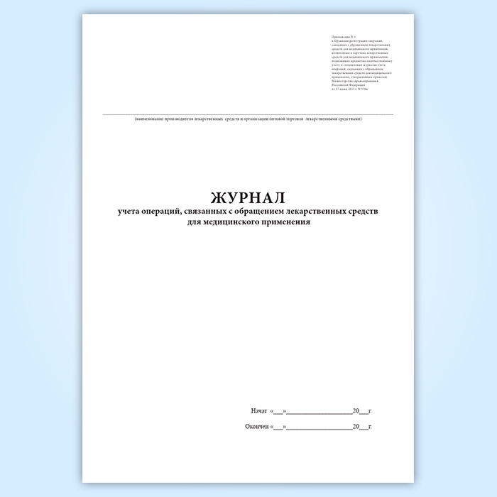 Журнал учета операций, связанных с обращением лекарственных средств для медицинского применения (для производителя лекарственных средств и организации оптовой торговли лекарственными средствами) в Верее купить
