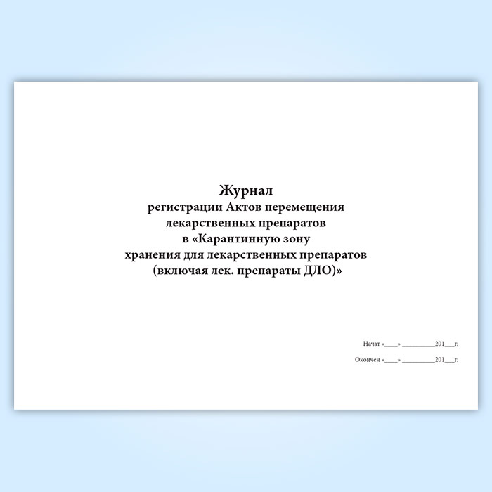 Журнал регистрации Актов перемещения лекарственных препаратов в «Карантинную зону хранения для лекарственных препаратов (включая лек. препараты ДЛО)» в Верее купить