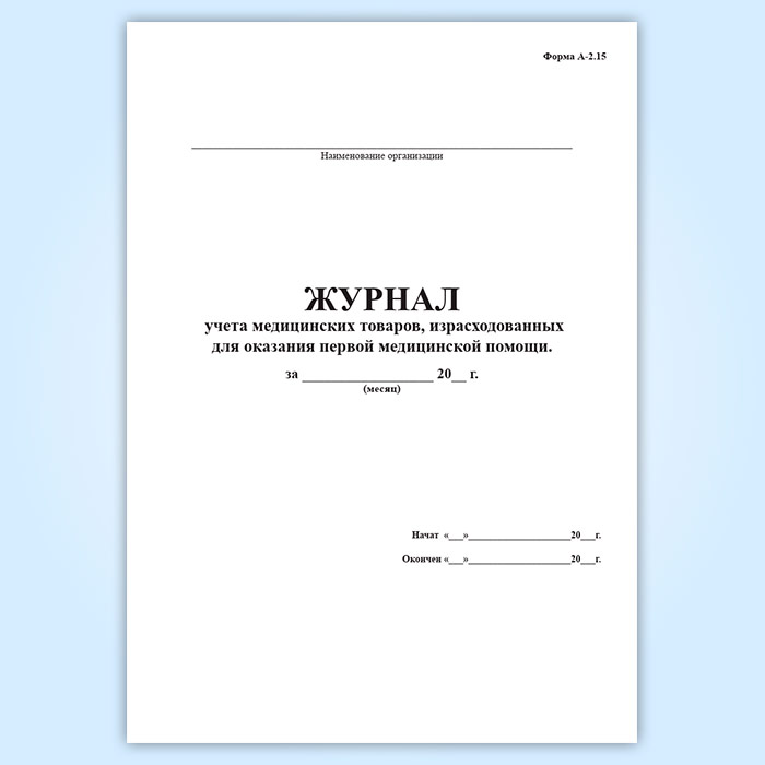 Журнал учета медицинских товаров, израсходованных для оказания первой медицинской помощи (форма А-2.15) в Верее купить