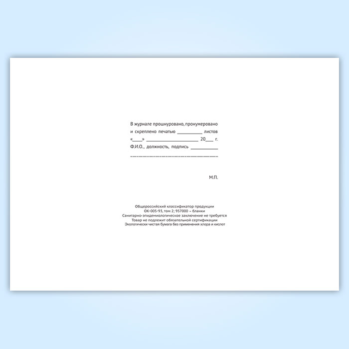 Вы получаете печатную продукцию прошнурованной и c местом для вашей печати в соответствии с действующими нормативными документами: