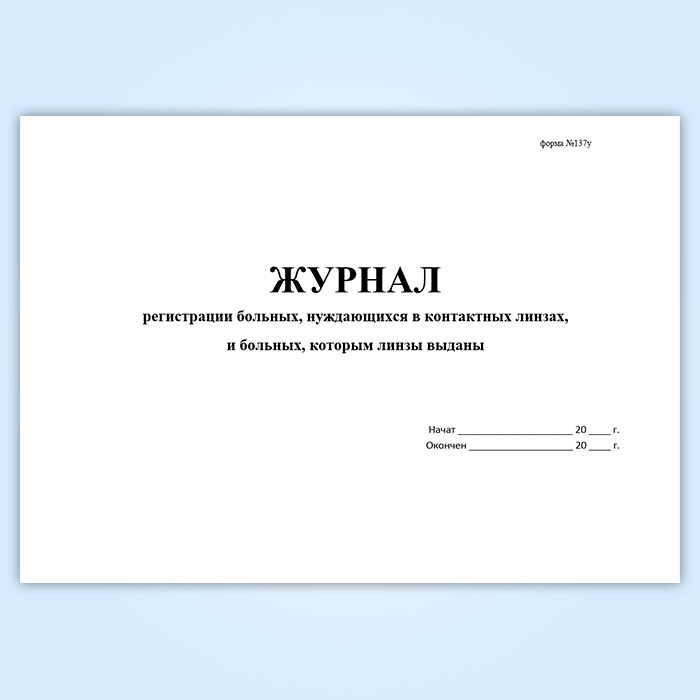 Журнал регистрации больных, нуждающихся в контактных линзах, и больных, которым линзы выданы (форма № 137/у) в Верее купить
