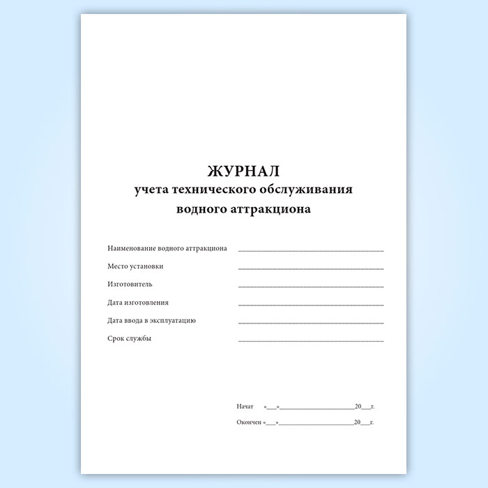 Журнал учета технического обслуживания водного аттракциона в Верее купить