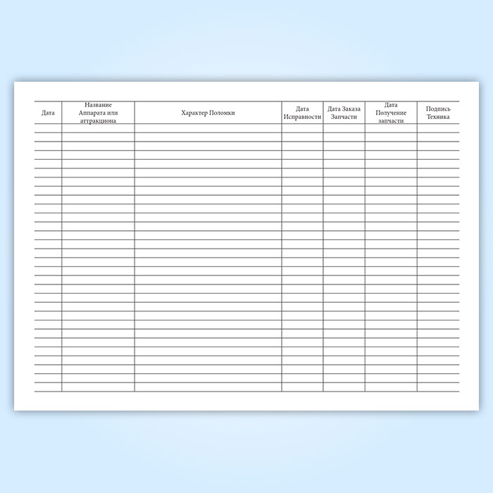 Журнал учета поломки аттракционов и игровых автоматов в Верее купить