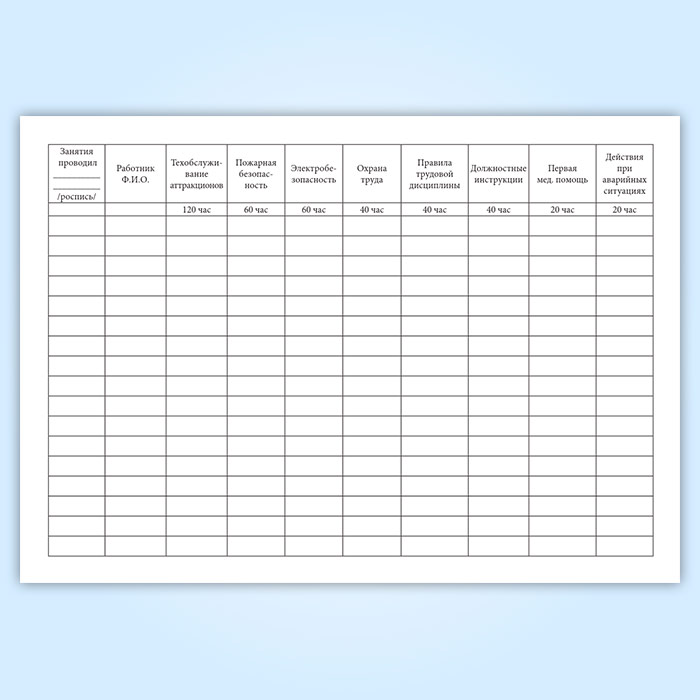 Журнал по обучению персонала передвижного городка аттракционов в Верее купить