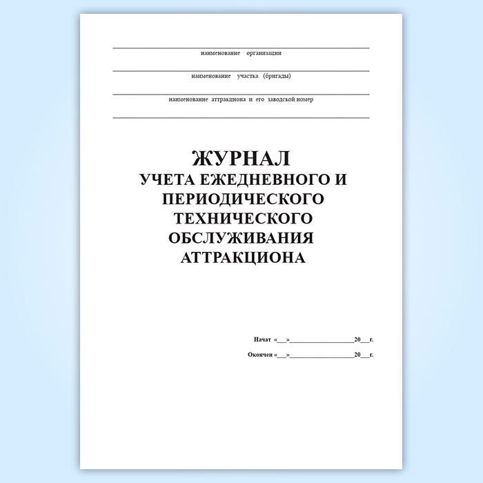 Журнал учета ежедневного и периодического технического обслуживания аттракциона в Верее купить