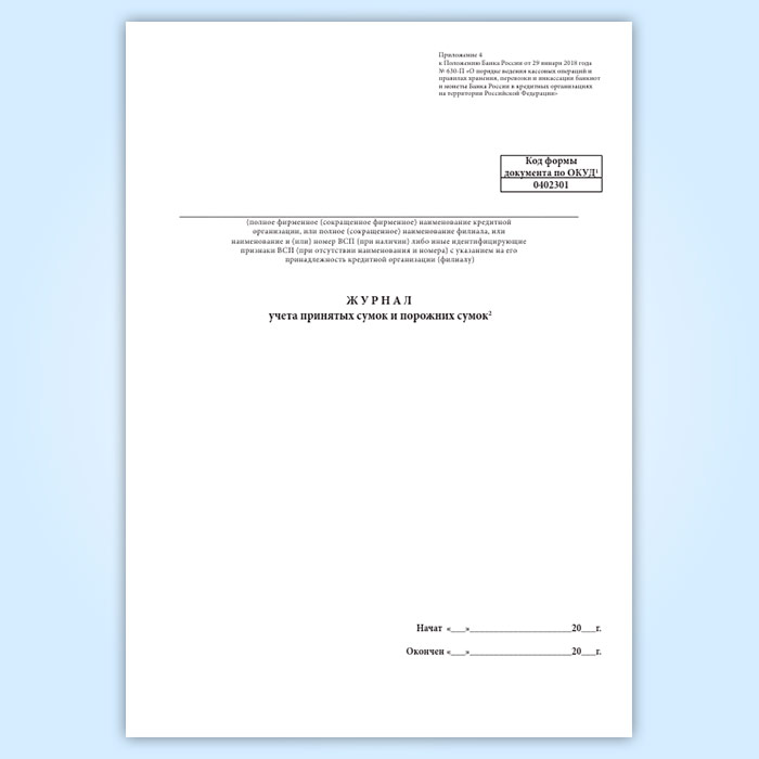 Журнал учета принятых сумок и порожних сумок (форма по ОКУД 0402301) в Верее купить