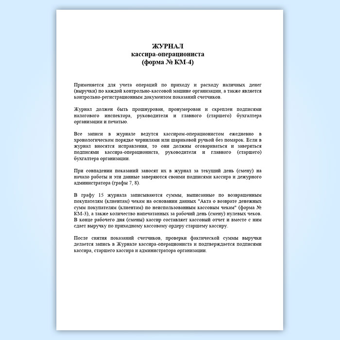 Журнал кассира-операциониста, вертикальный (форма № КМ-4) в Верее купить