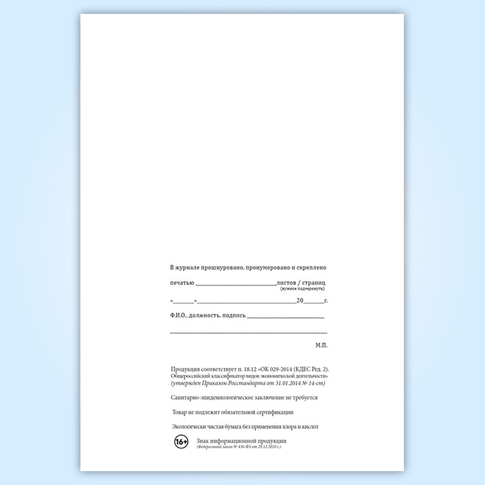 Вы получаете печатную продукцию прошнурованной и c местом для вашей печати в соответствии с действующими нормативными документами: