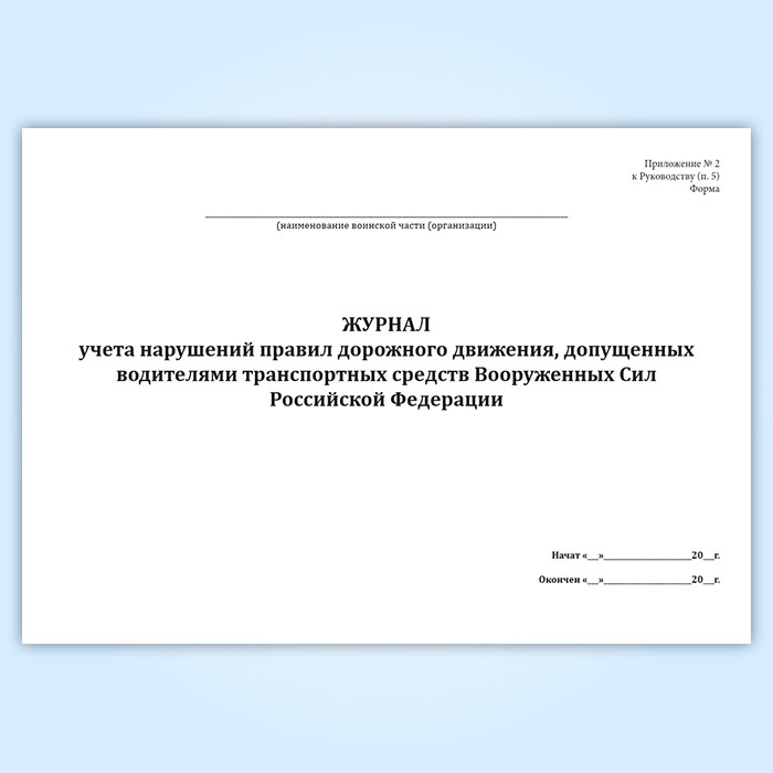 Журнал учета нарушений правил дорожного движения, допущенных водителями транспортных средств Вооруженных Сил Российской Федерации в Верее купить