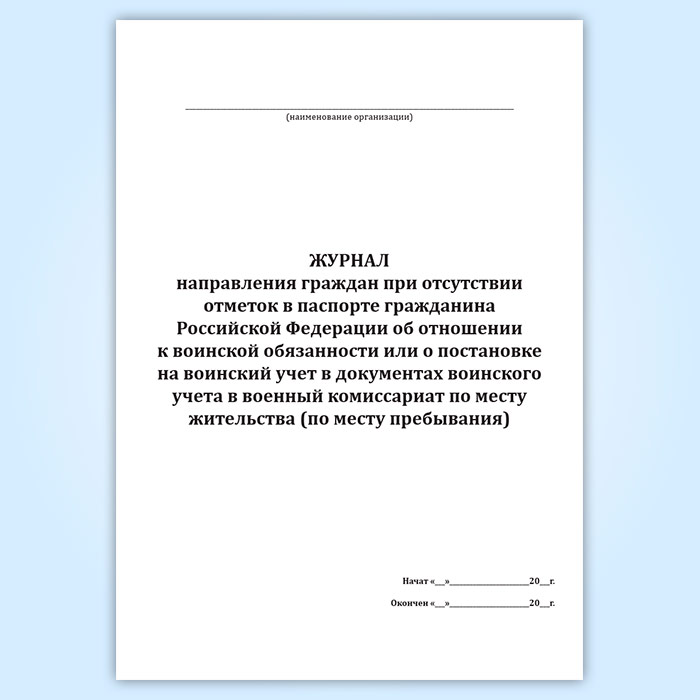 Журнал направления граждан при отсутствии отметок в паспорте гражданина Российской Федерации об отношении к воинской обязанности или о постановке на воинский учет в документах воинского учета в военный комиссариат по месту жительства (по месту пребывания) в Верее купить