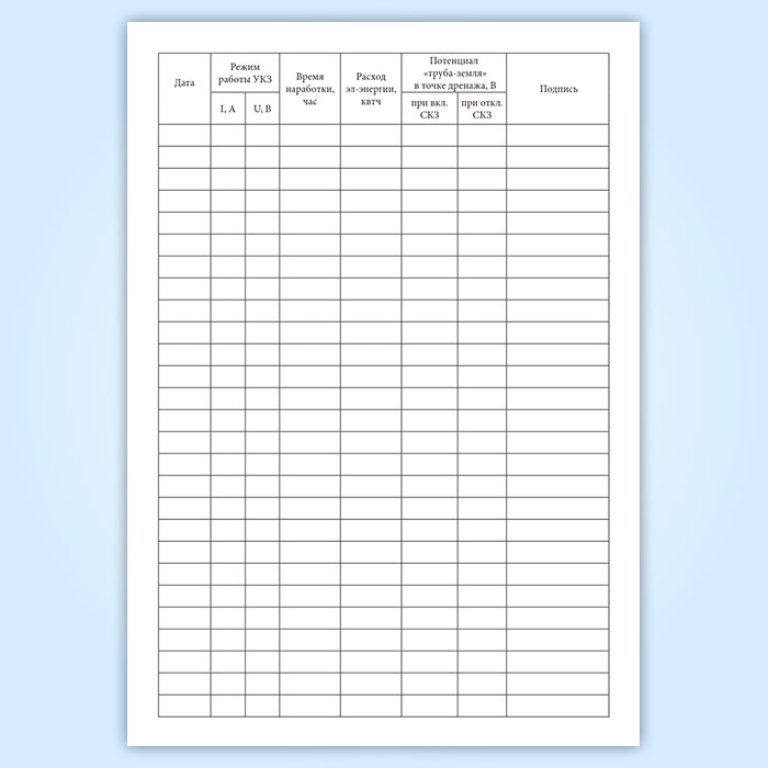 Полевой журнал учета работы установки катодной защиты в Верее купить