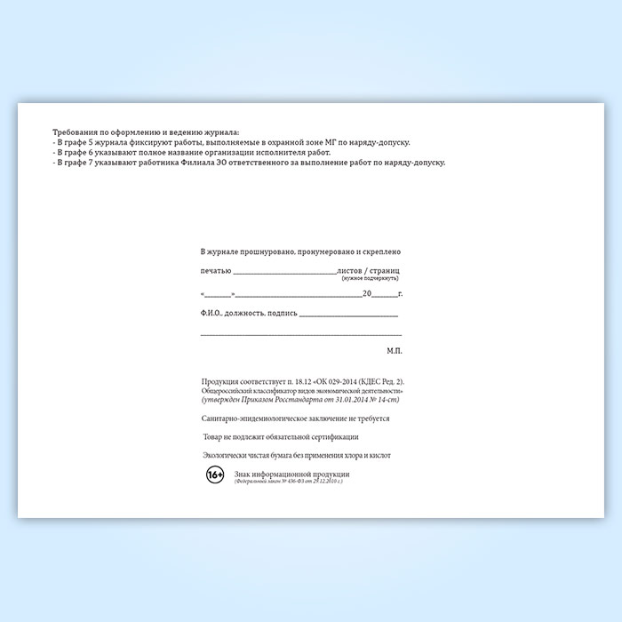 Вы получаете печатную продукцию прошнурованной и c местом для вашей печати в соответствии с действующими нормативными документами: