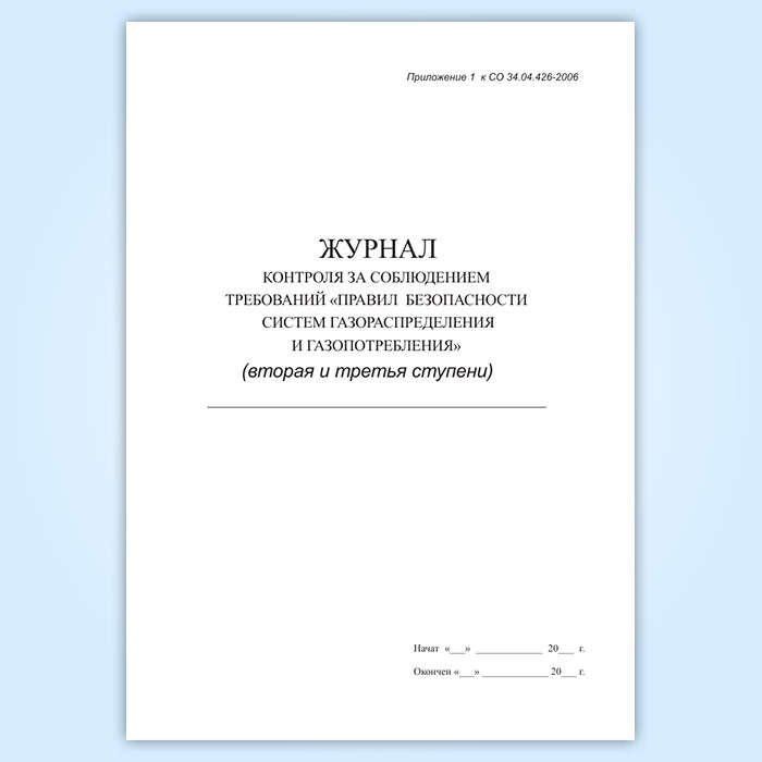 Журнал контроля за соблюдением требований Правил безопасности систем газораспределения и газопотребления (вторая и третья ступени) в Верее купить
