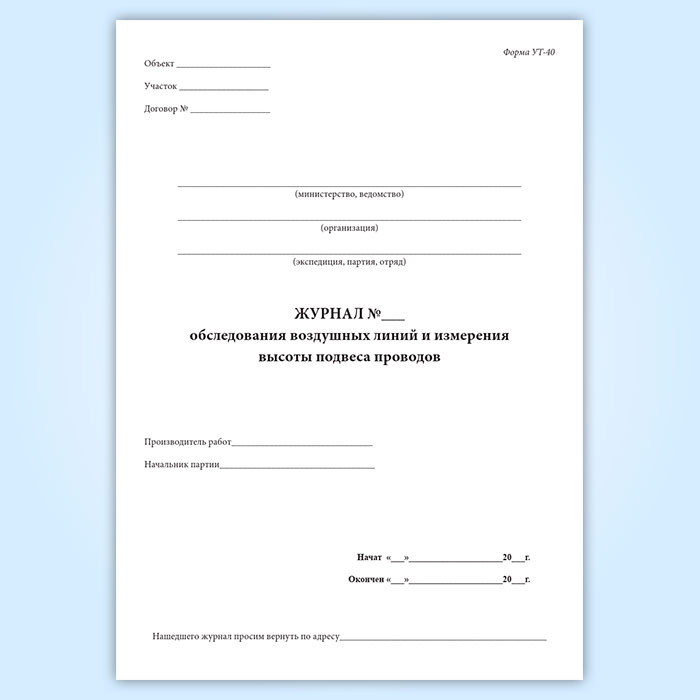 Журнал обследования воздушных линий и высоты подвеса проводов (форма УТ-40) в Верее купить