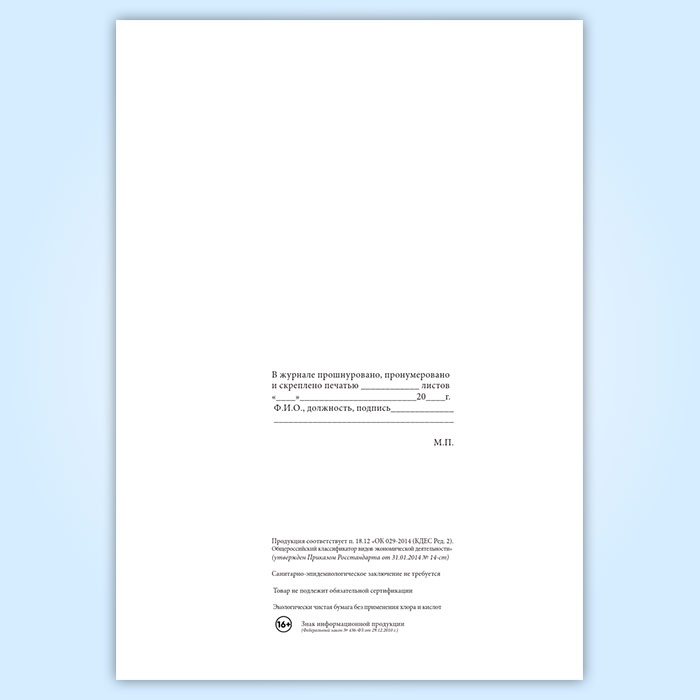 Вы получаете печатную продукцию прошнурованной и c местом для вашей печати в соответствии с действующими нормативными документами: