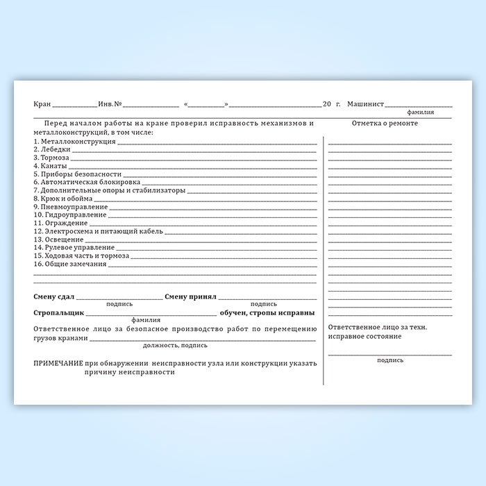 Вахтенный журнал г/п крана в Верее купить