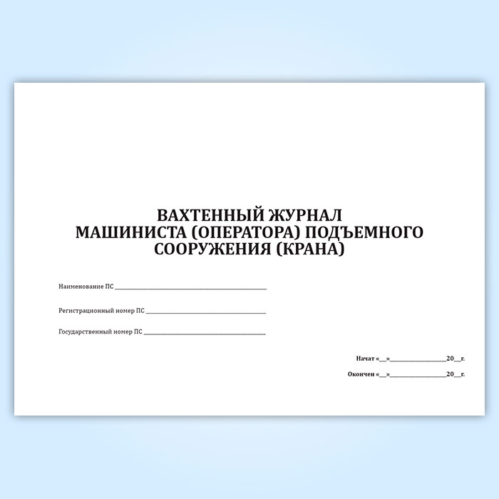 Вахтенный журнал машиниста (оператора) подъемного сооружения (крана) в Верее купить