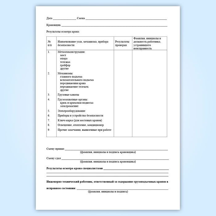 Вахтенный журнал крановщика (кранов мостового типа) в Верее купить