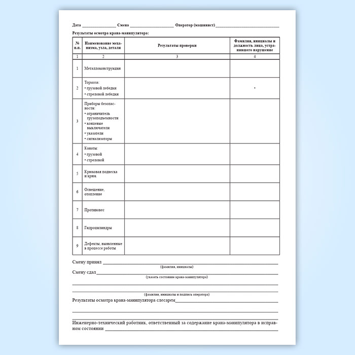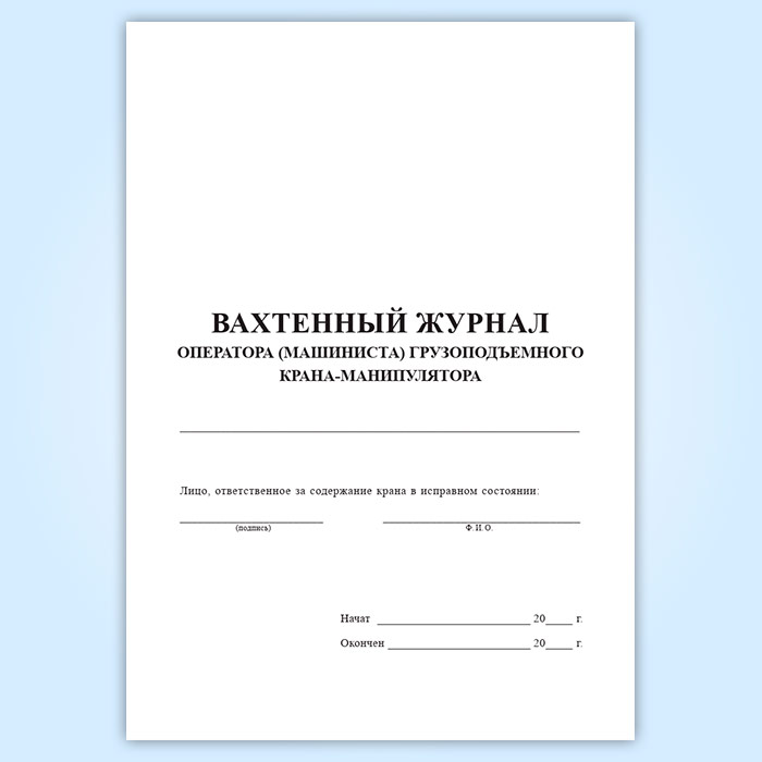 Вахтенный журнал оператора (машиниста) грузоподъемного крана-манипулятора в Верее купить