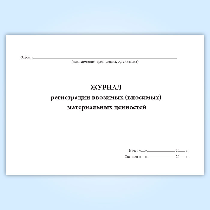 Журнал регистрации ввозимых (вносимых) материальных ценностей в Верее купить