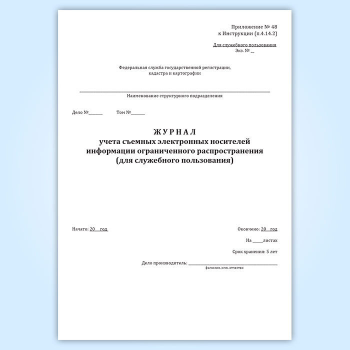 Журнал учета съемных электронных носителей информации ограниченного распространения (для служебного пользования) в Верее купить