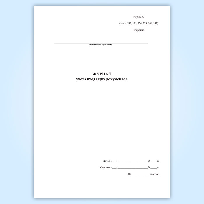 Журнал учета входящих документов (форма № 30) в Верее купить