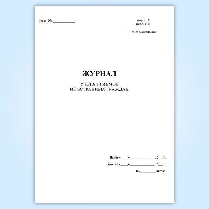 Журнал учета приемов иностранных граждан (форма 20) в Верее купить