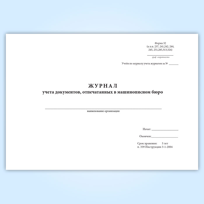 Журнал учета документов, отпечатанных в машинописном бюро (форма 32) в Верее купить