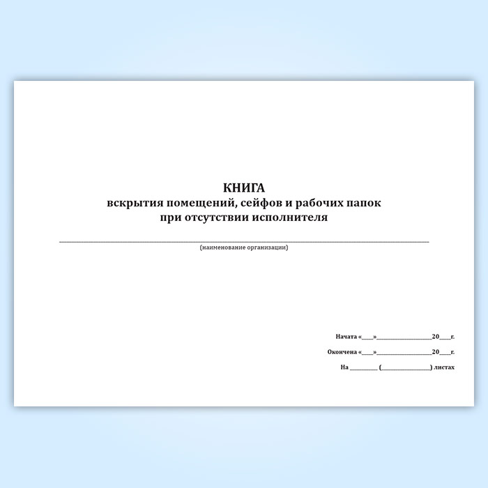 Книга вскрытия помещений, сейфов и рабочих папок при отсутствии исполнителя в Верее купить