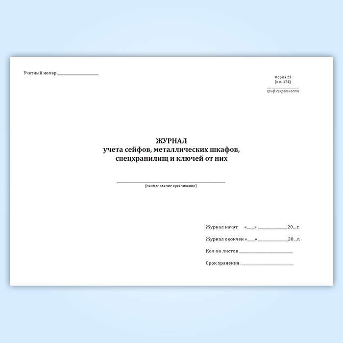 Журнал учета сейфов, металлических шкафов, спецхранилищ и ключей от них в Верее купить