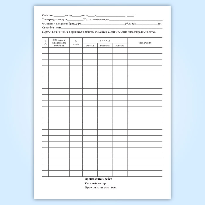 Журнал контроля качества очистки элементов стальных мостовых конструкций с соединениями на высокопрочных болтах в Верее купить