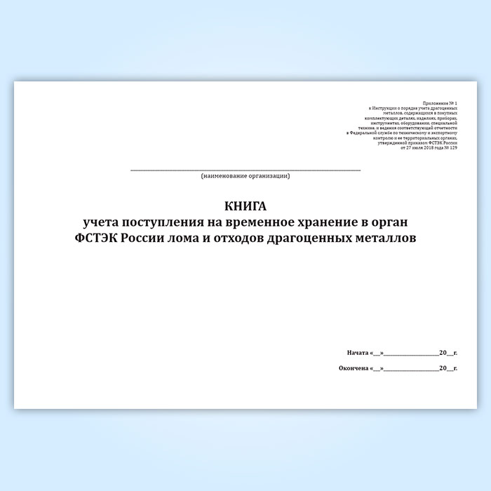 Книга учета поступления на временное хранение в орган ФСТЭК России лома и отходов драгоценных металлов в Верее купить