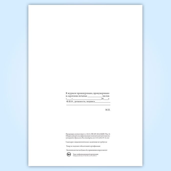Вы получаете печатную продукцию прошнурованной и c местом для вашей печати в соответствии с действующими нормативными документами: