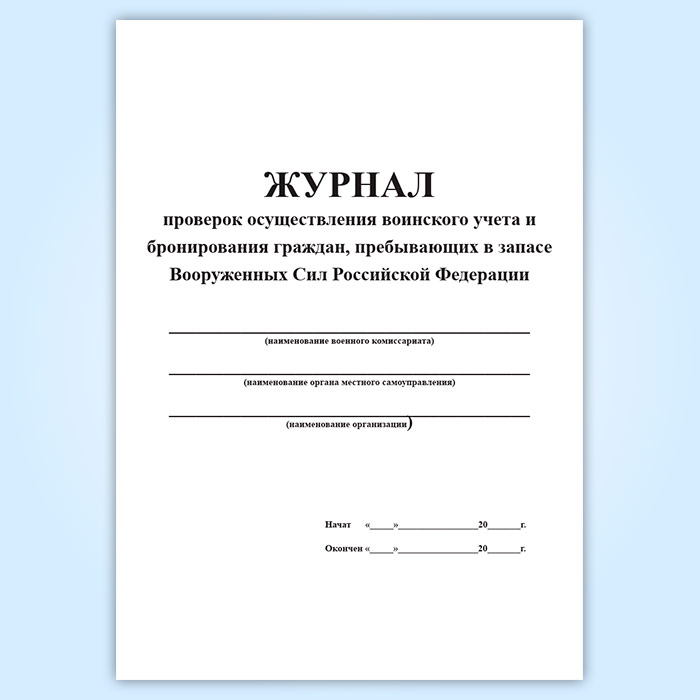 Журнал проверок осуществления воинского учета и бронирования граждан, пребывающих в запасе Вооруженных Сил Российской Федерации в Верее купить