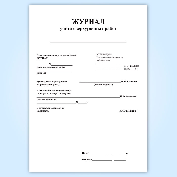 Журнал учета сверхурочных работ в Верее купить