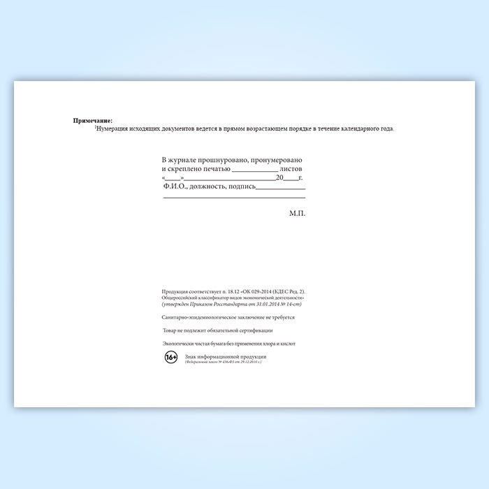 Журнал учета исходящих документов по вопросам кадровой работы в Верее купить