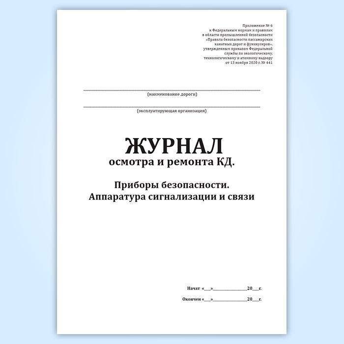Журнал осмотра и ремонта канатной дороги. Приборы безопасности. Аппаратура сигнализации и связи (форма № 9) в Верее купить