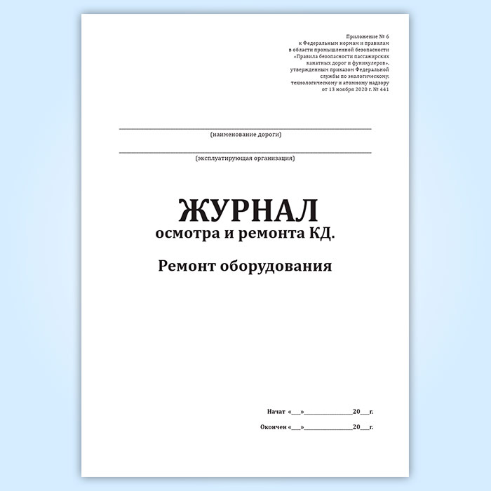 Журнал осмотра и ремонта канатной дороги. Ремонт оборудования (форма № 10) в Верее купить