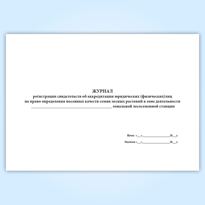 Журнал регистрации свидетельств об аккредитации юридических (физических) лиц на право определения посевных качеств семян лесных растений в зоне деятельности зональной лесосеменной станции в Верее купить