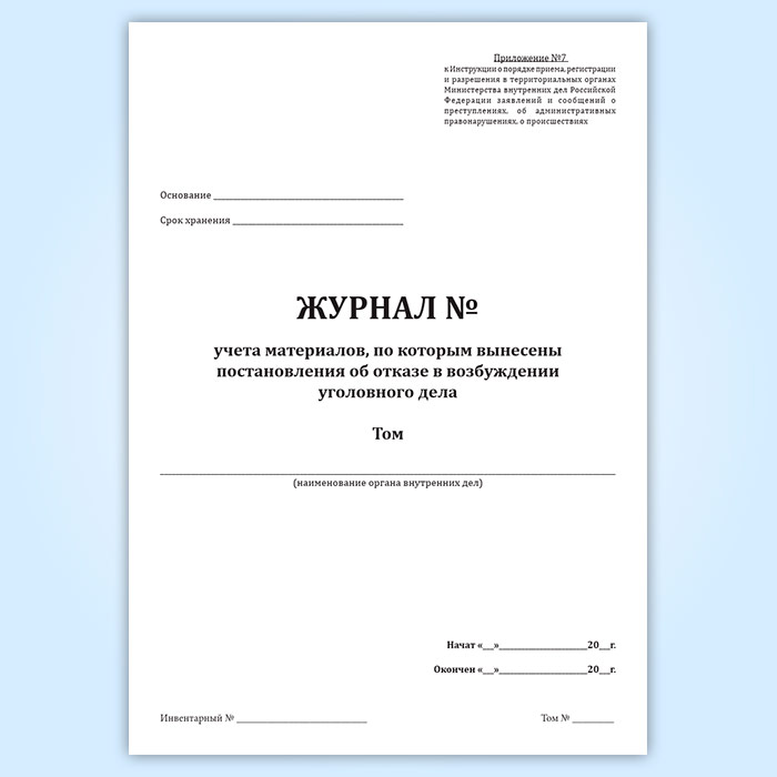 Журнал учета материалов, по которым вынесены постановления об отказе в возбуждении уголовного дела в Верее купить