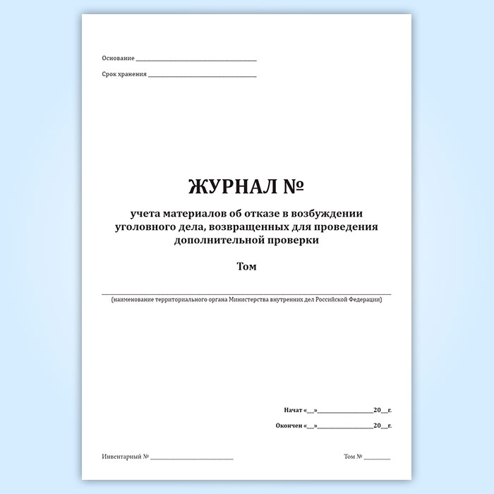 Журнал учета материалов об отказе в возбуждении уголовного дела, возвращенных для проведения дополнительной проверки в Верее купить