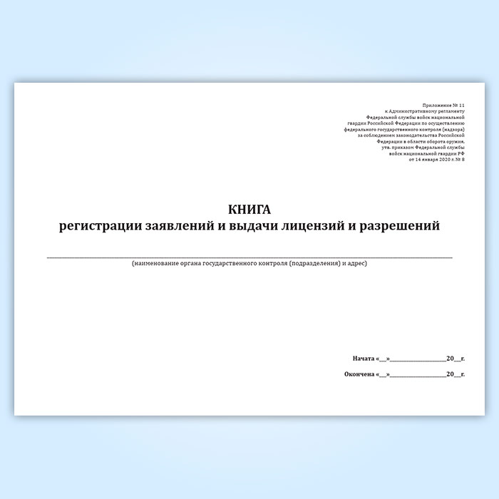 Книга регистрации заявлений и выдачи лицензий и разрешений (Приказ Росгвардии от 14.01.2020 N 8) в Верее купить