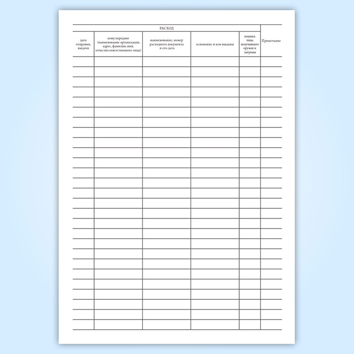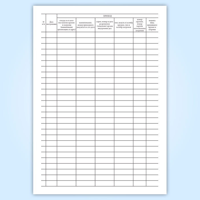 Книга учета наличия и движения поступающего, хранящегося и выдаваемого (проданного) оружия и патронов в Верее купить