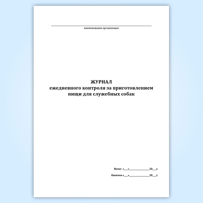 Журнал ежедневного контроля за приготовлением пищи для служебных собак в Верее купить